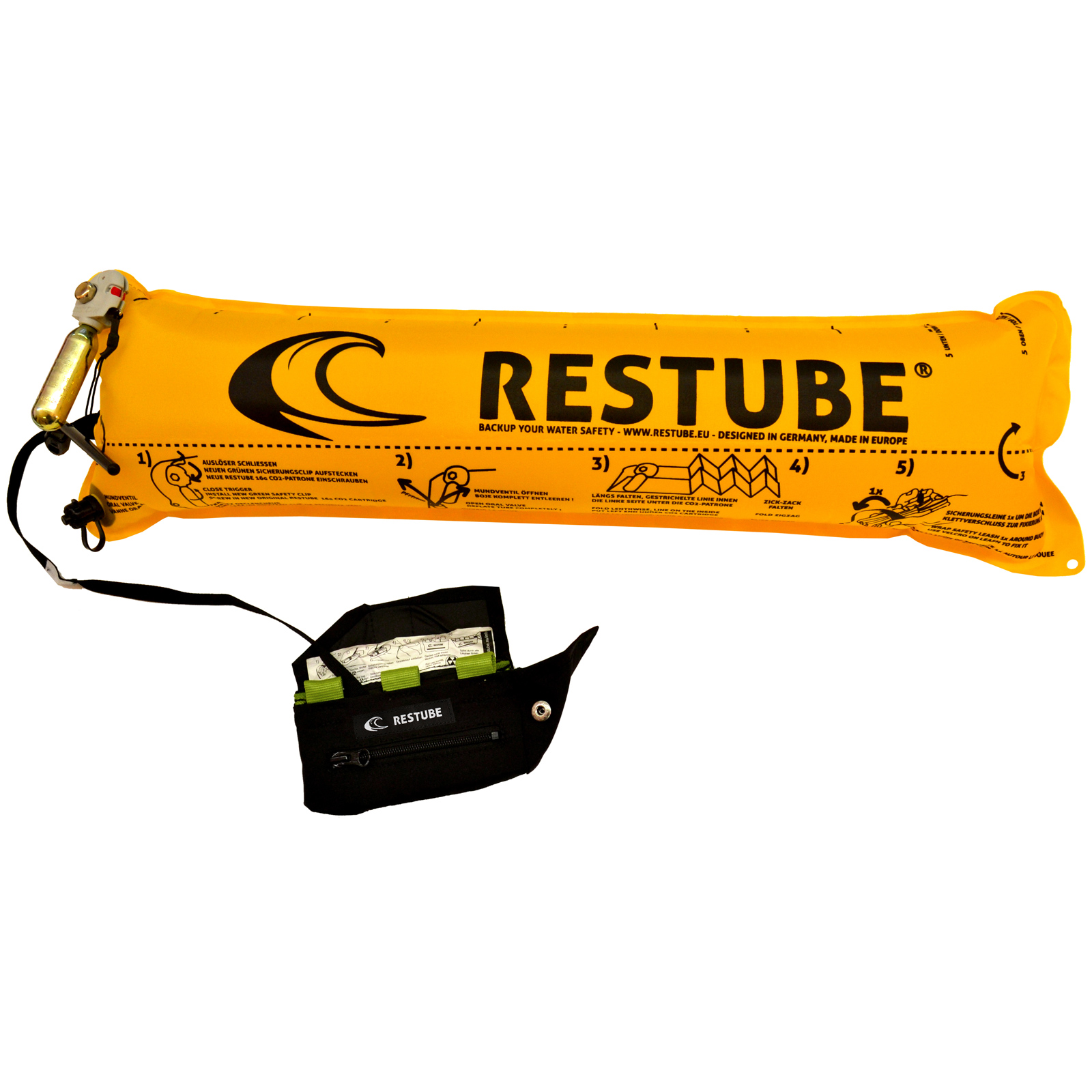 Dein aufblasbares Backup im Wasser. Klein und leicht hast Du Restube immer dabei.